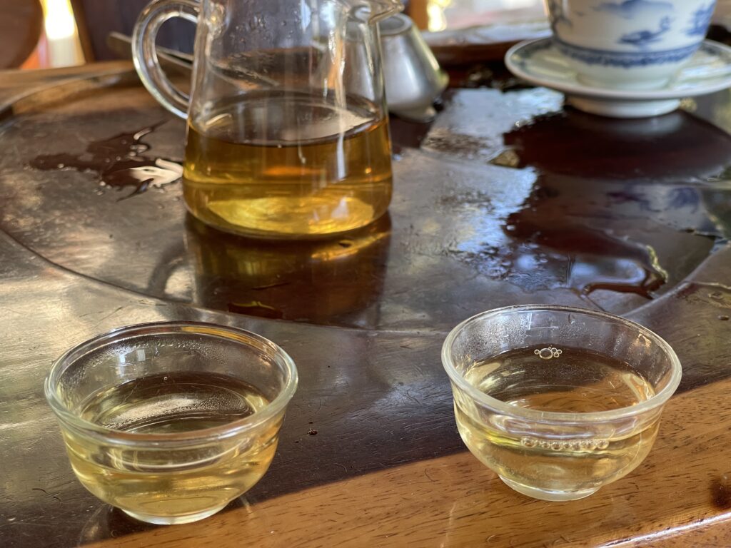 樹齢が500年の野生茶樹と大平掌古茶林の千年古樹を試飲しました。